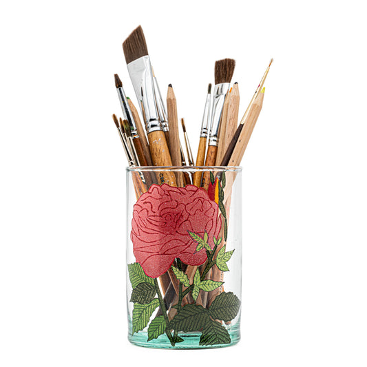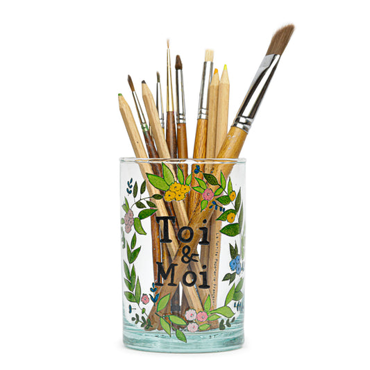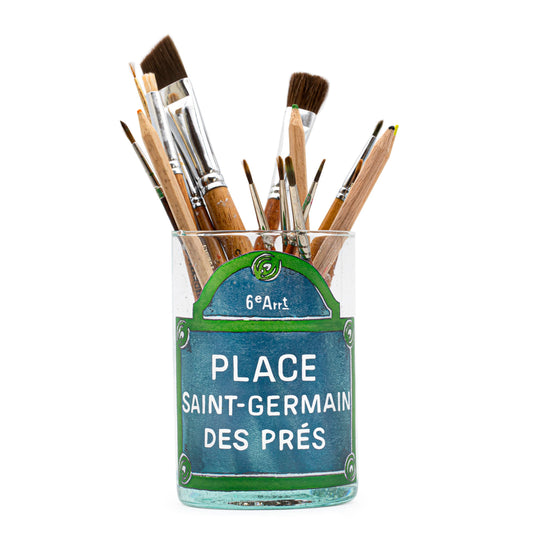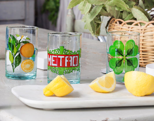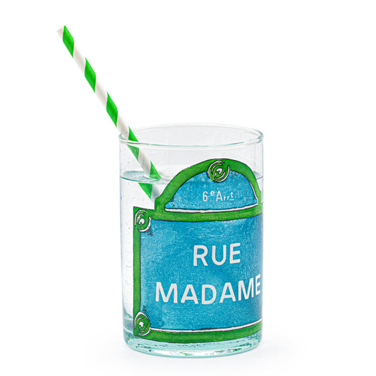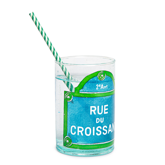 The collection of hand-painted glassware is entirely made in its workshops in Paris. And for each of the illustrated glassware pieces, the illustrations are affixed in its workshops in Paris and fired on site.
