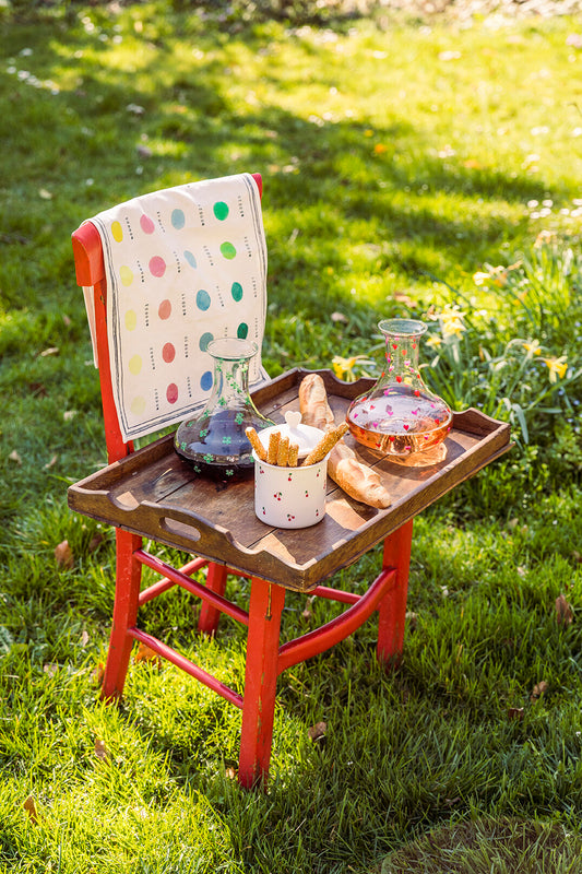 La vaisselle, d’une rare finesse, est confectionnée en porcelaine émaillée.