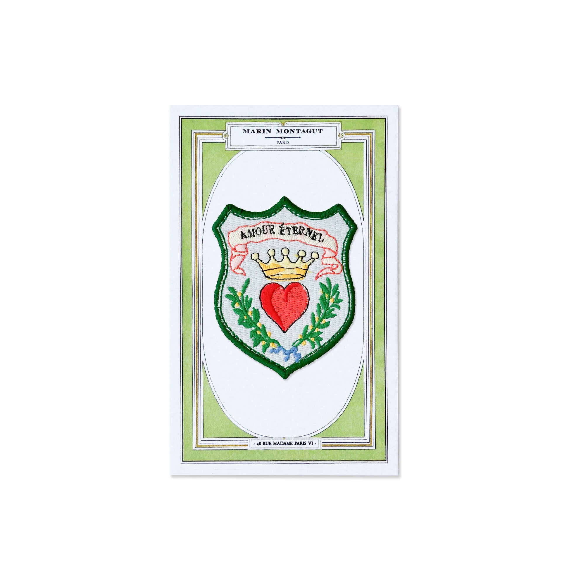 On y retrouve son illustration iconique du coeur couronné, symbole d'amour et de protection.