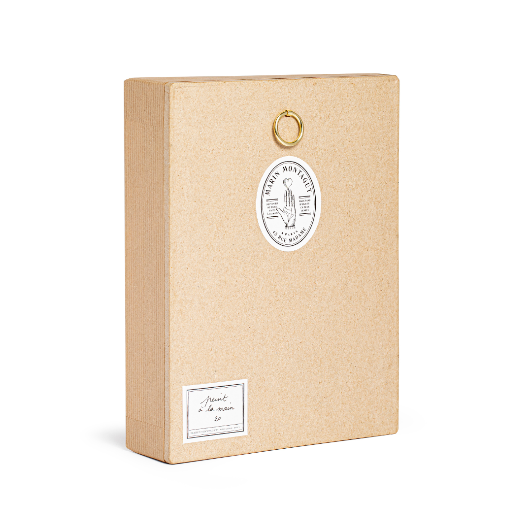 L’illustration à l’aquarelle ROI DE COEUR est inspirée par la symbolique mystérieuse et poétique du tarot, chère à son créateur Marin Montagut. L’illustration à l’aquarelle est déclinée ici sous la forme d’une vitrine à merveilles.